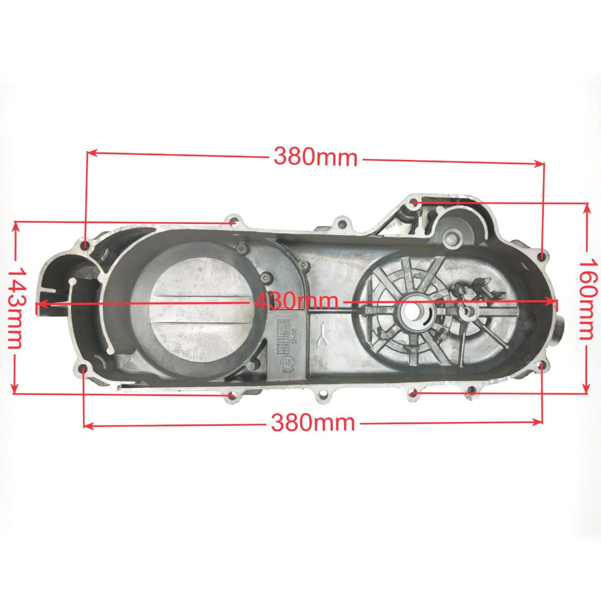 Replacement crankcase cover for all vehicles with 12'' wheels and 4-stroke GY6 139QMB engines. The 12”wheel version mostly has a 729mm v-belt.