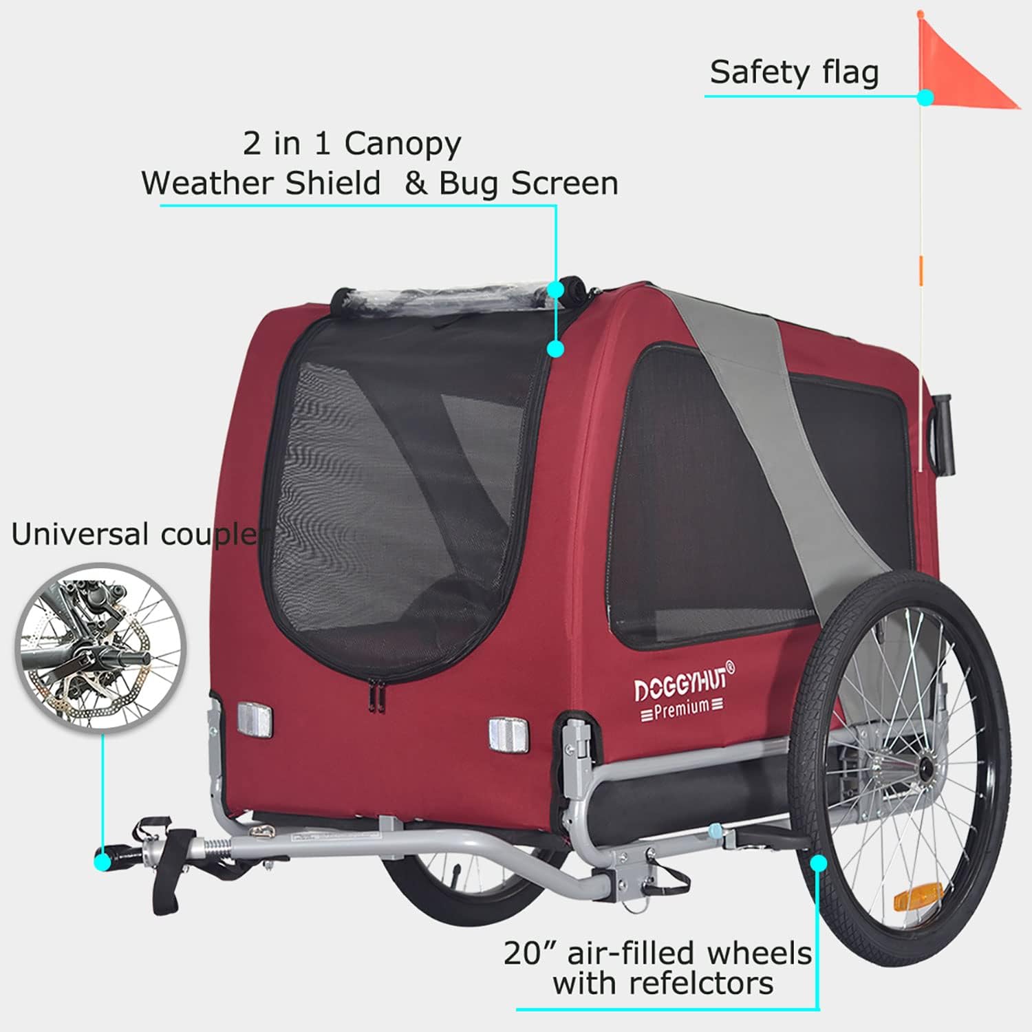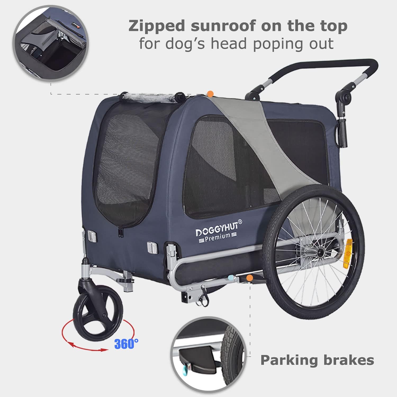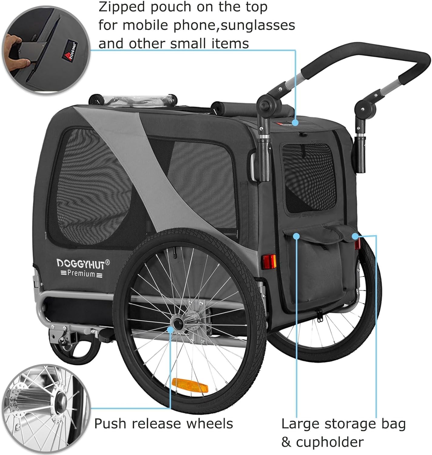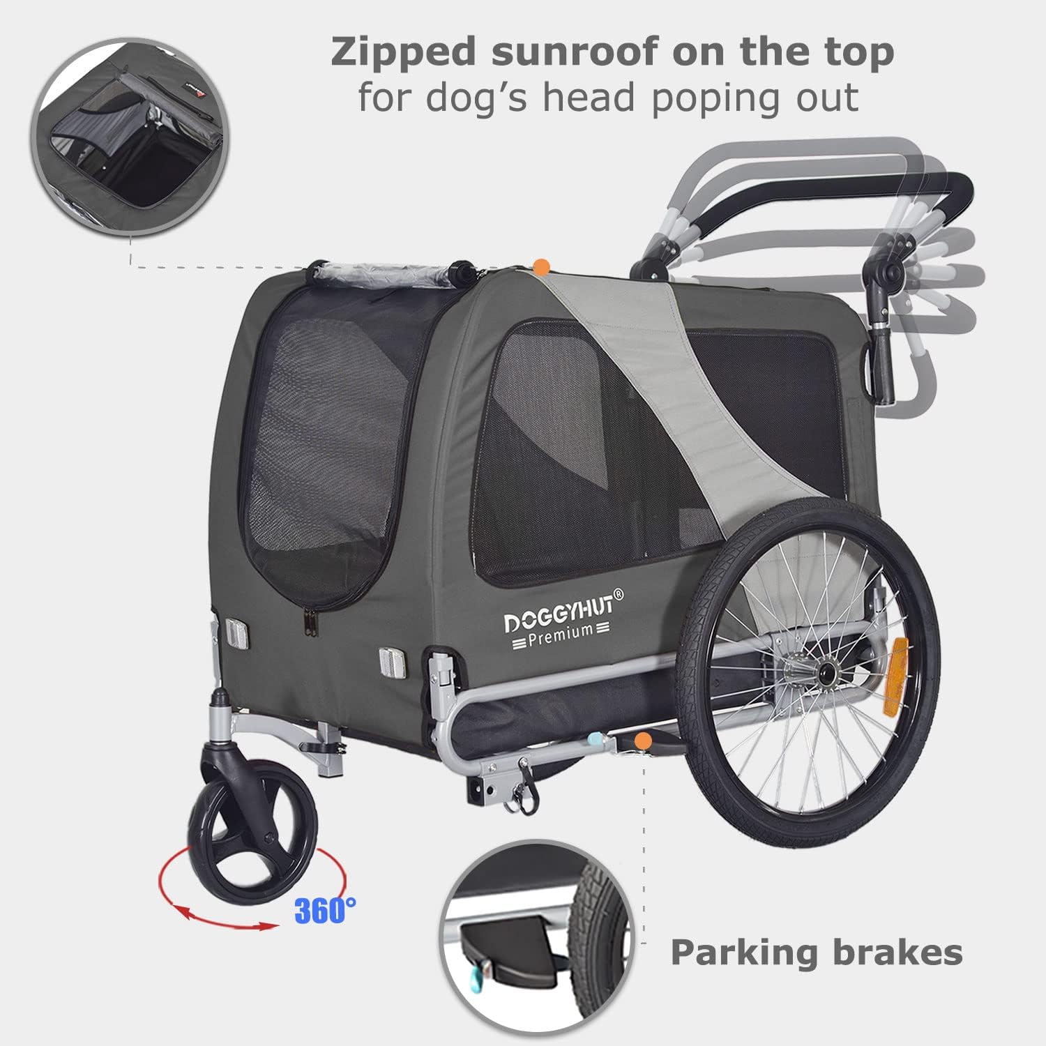 Doggyhut Large Dog Bike Trailer & Stroller Reinforced Base Floor Parking Brake