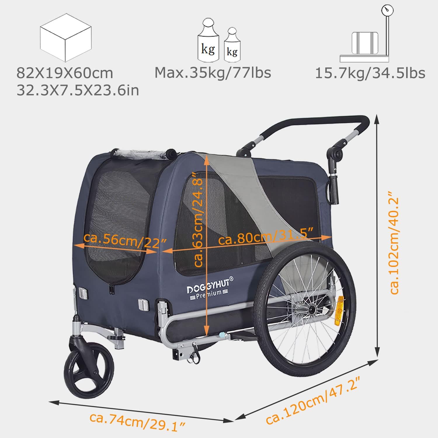 80105 Doggyhut Premium Large Pet Bicycle Trailer & Stroller 2 in1