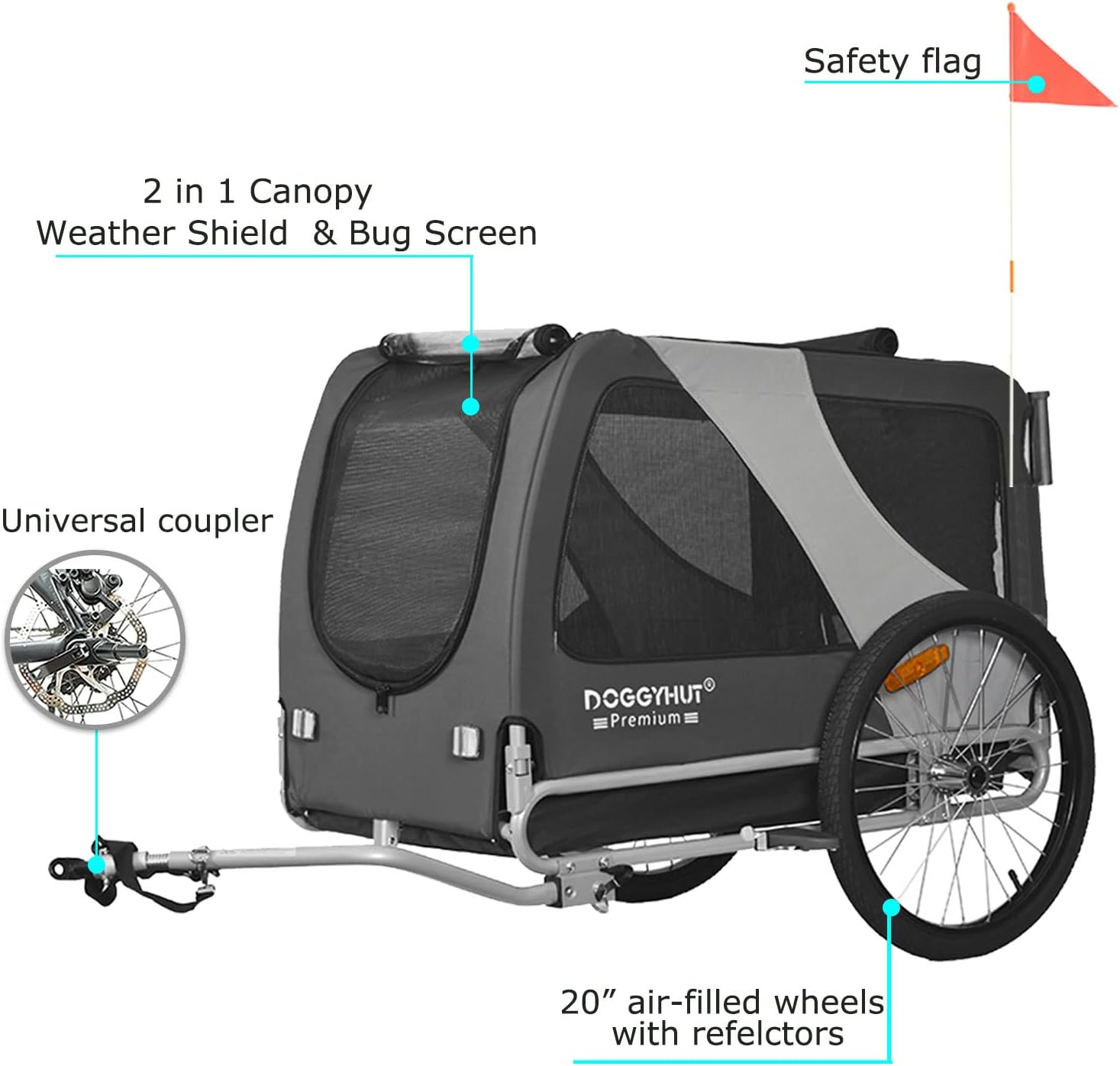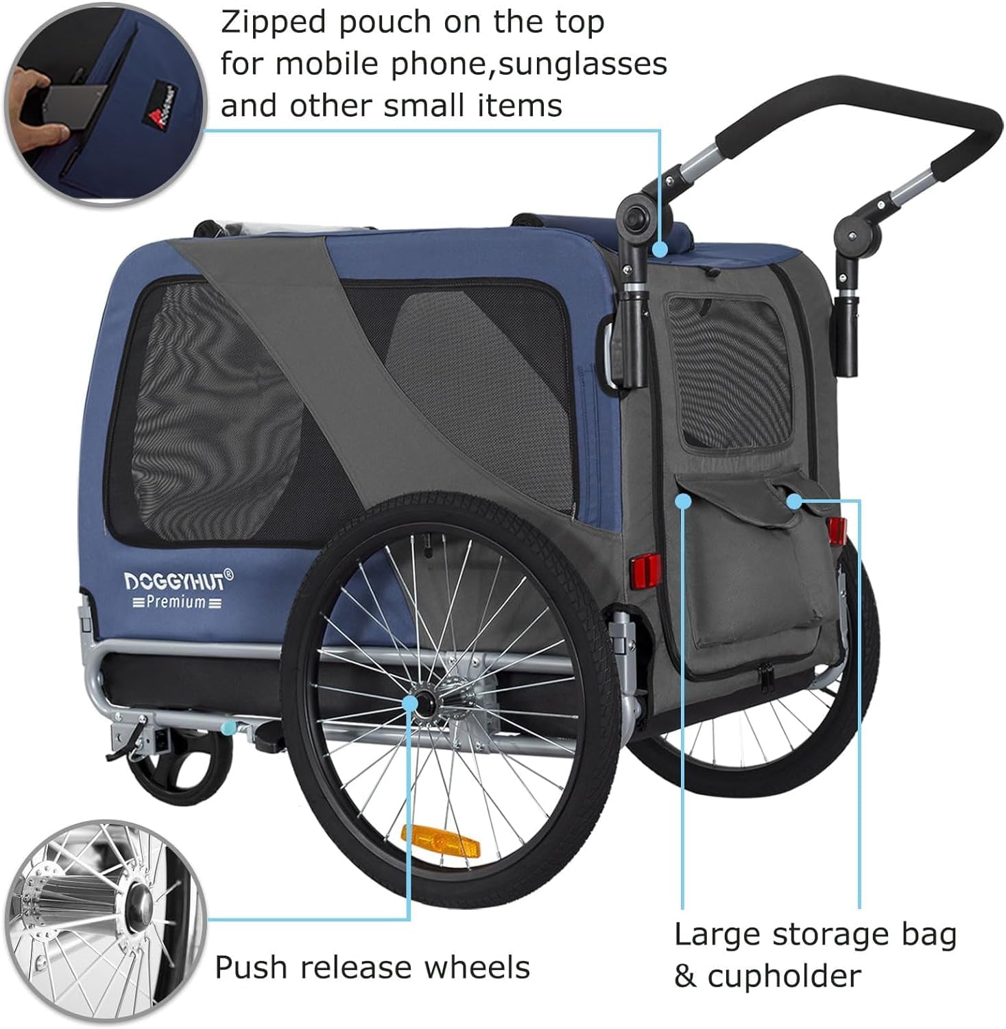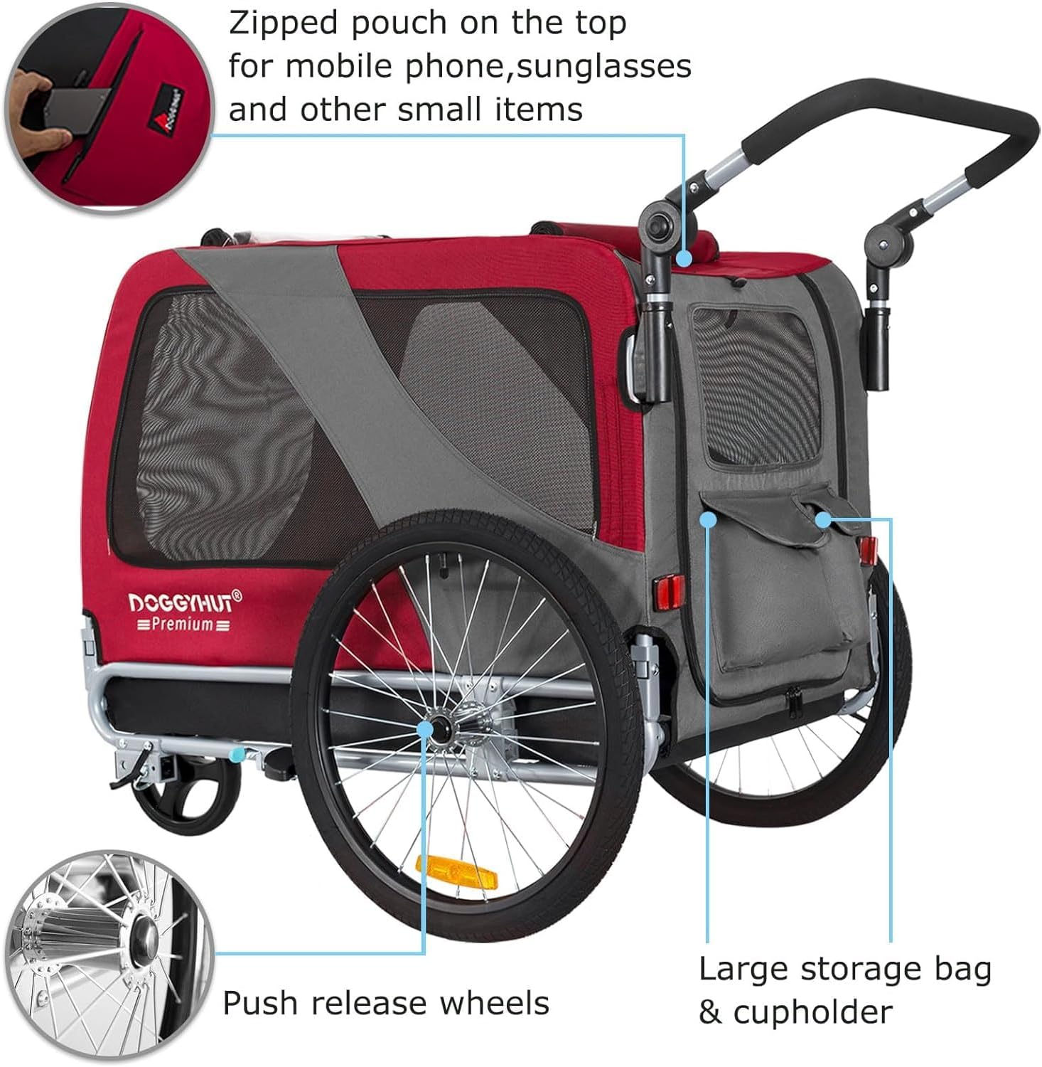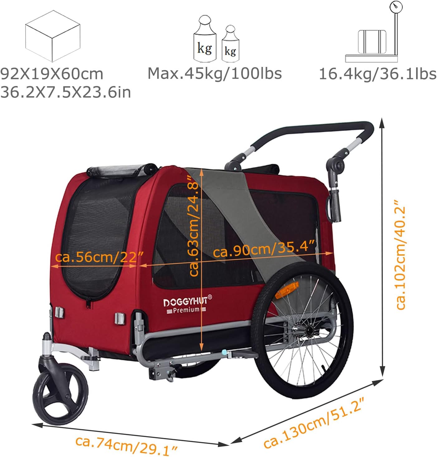 Doggyhut XL Pet Bike Trailer & Stroller for Dogs Up to 45kgs Parking Brakes