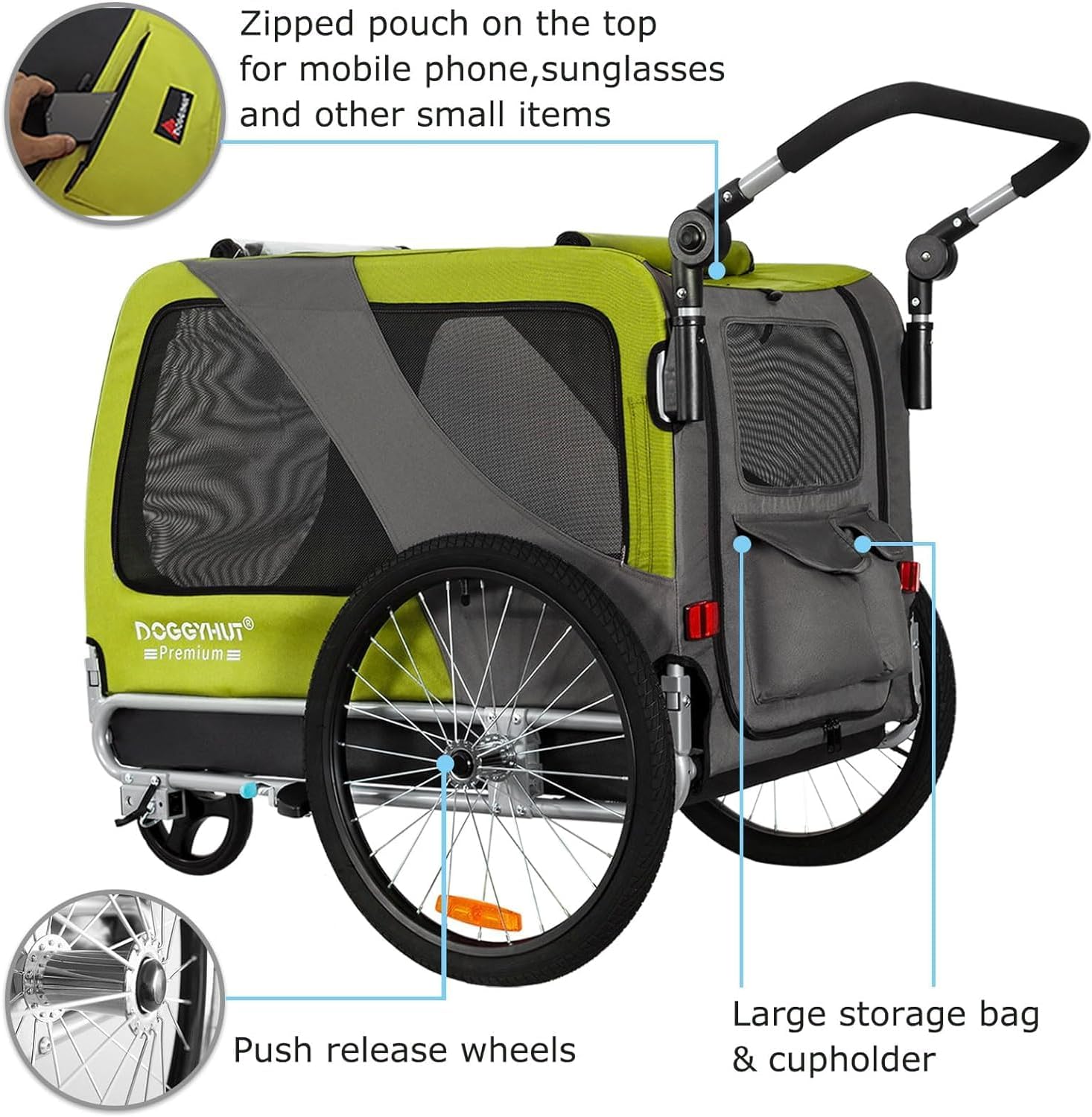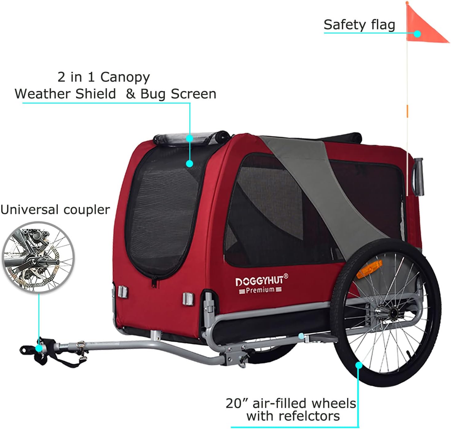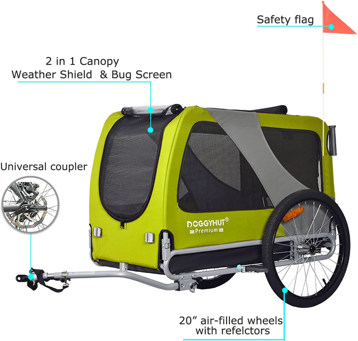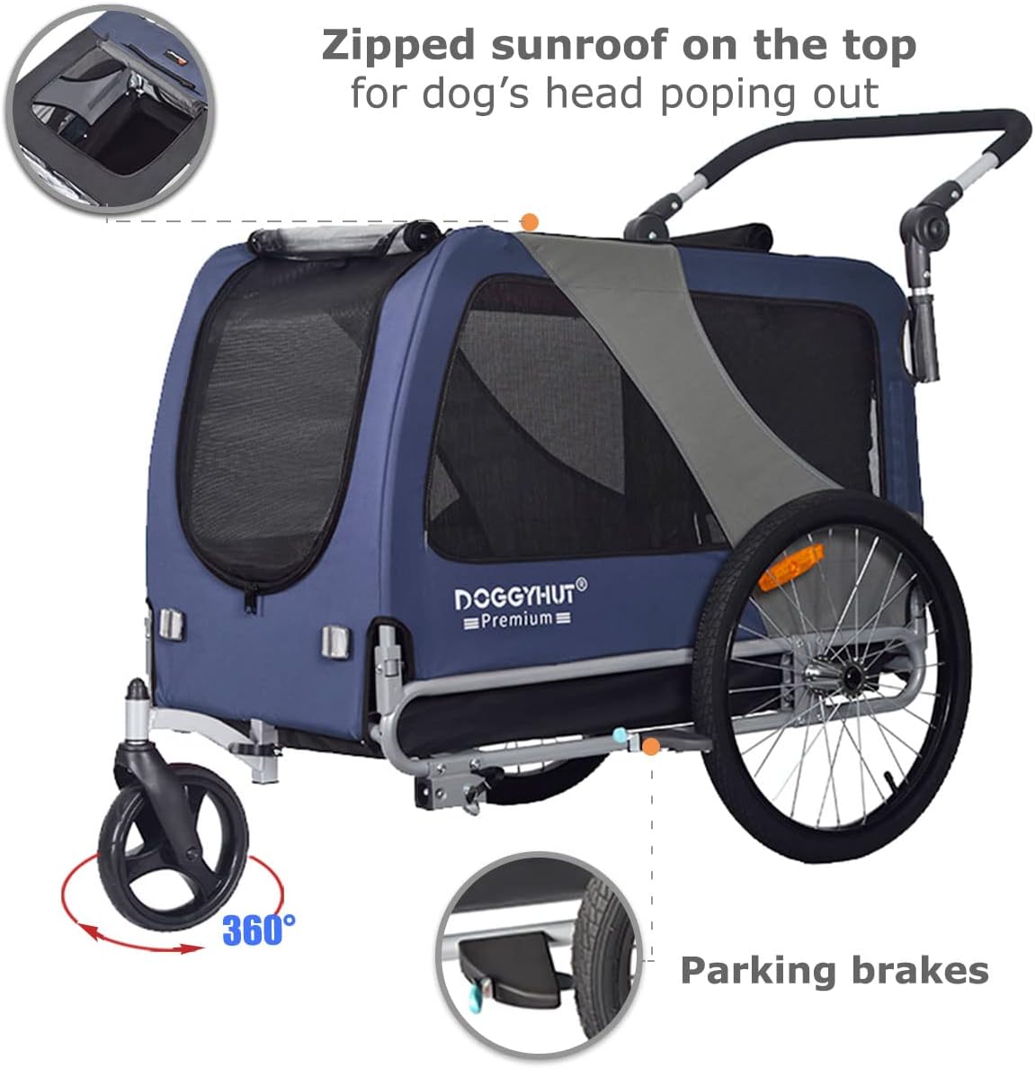Doggyhut XL Pet Bike Trailer & Stroller for Dogs Up to 45kgs Parking Brakes