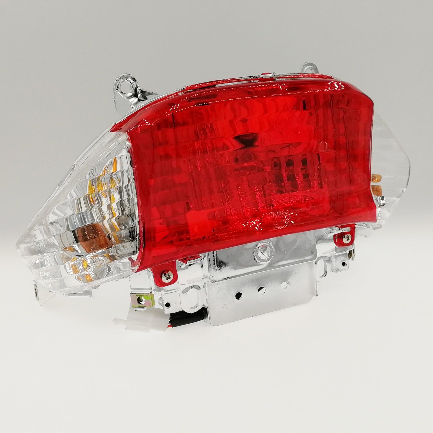 Tail Light Assy - white turn signal lens, complete bulbs included and with E-mark certificate. Suitable for all Chinese-built 4-stroke vehicles. It is supplied with white lenses and orange-coloured bulbs.