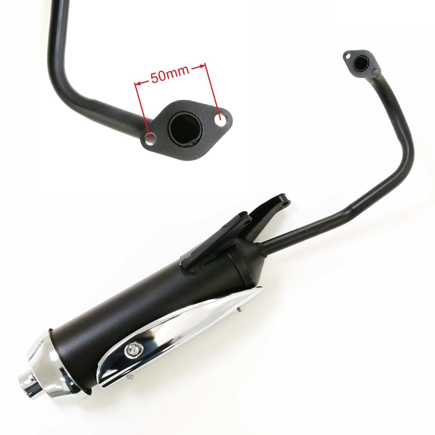 Replacement exhaust for different GY6 China 4-stroke vehicles.This exhaust system is without a secondary air system (SLS).