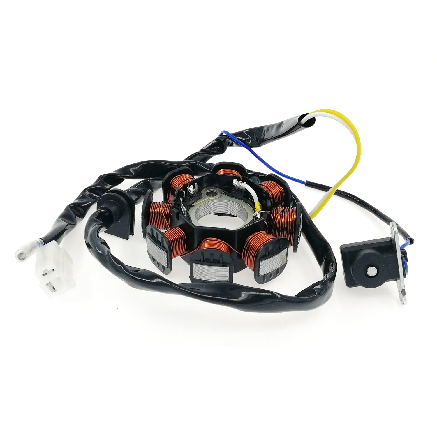 Replacement alternator for Kymco 50ccm 4-stroke vehicles.