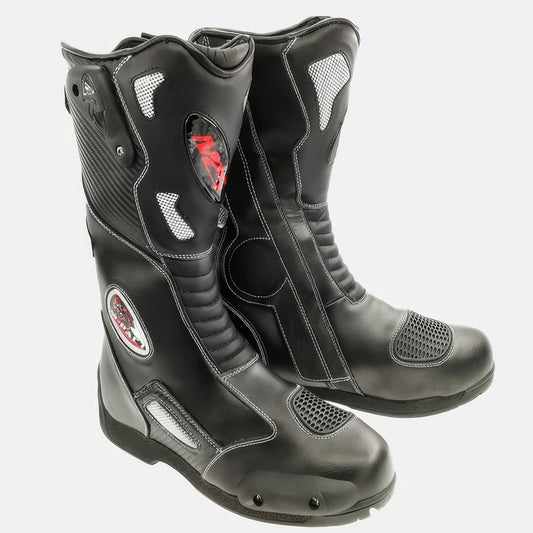 Motorcycle Black Armoured Leather Waterproof Motorbike Race Sport Boots